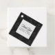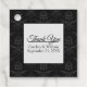 Black and white contemporary wedding favour gift tags done in a black on black floral damask pattern. A white square text area, in the middle of the tag, has black custom text ready to personalise.