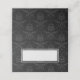 Black and white folded wedding place card done in a black on black floral damask pattern, with a white text area, on the front. Personalise the front of the card by hand for each guest at your reception.