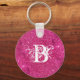 Chic Cool Pink Glitter White Initial Monogram Key Ring