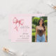 Put the star of the show front and center with our chic coquette photo birthday invitation. This elegant design beautifully frames your favorite picture with an array of delicate pink bows, blending a personal touch with the trendy coquette aesthetic. It's the perfect way to create a deeply stylish and memorable invitation that your guests will treasure as a keepsake. Ideal for any age, simply add your photo and party details to craft a one-of-a-kind invitation.