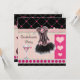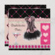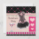 Bachelorette party invites. Elegant, girly and glamourous pink and black Bachelorette party collage invitations with a fashionable pink and black corset with ribbons and bows, a cute glass of pink martini and classy printed glitter outlined romantic pink hearts on a beautiful background of pink and tan stripes, musical notes, pretty pink flower petals and a pink polka dots diagonal pattern on a black border. Trendy modern contemporary invites with a vintage retro elegance look. Double sided printing. All of the text is fully personalizable to meet your needs and you can change the font style, colour and size of font if you desire. If you need any assistance customising your product please contact me through my store and I will be happy to help. PLEASE NOTE: All invites on Zazzle have flat printed images.