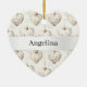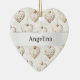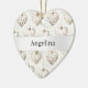 Chic Cream Hearts Silver Ribbon Christmas Ceramic Ornament