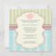 This invitation sets the stage for a chic baby shower that she's sure to love. A sweet silhouette of a delicate teapot with an elegant pastel blue and cream damask and minty green and cream stripe background, pink accents and faux jewels, creating a lovely design with a French feel that's fit for an elegant and feminine tea party Baby Shower that's perfect when the baby on the way is a girl or boy.