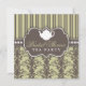 This invitation sets the stage for a chic bridal shower that she's sure to love. A sweet silhouette of a delicate teapot with elegant mocha brown and sage green damask and stripe pattern, all creates a lovely design with a French feel that's fit for an elegant tea party Bridal Shower.