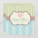 This invitation sets the stage for a chic bridal shower that she's sure to love. A sweet silhouette of a delicate teapot with an elegant blue and cream damask pattern and sage green and cream stripes, and accented with touches of pastel pink. It all creates a lovely design with a French feel that's fit for an elegant and feminine tea party Bridal Shower.