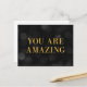 Chic motivational postcard featuring the words "You Are Amazing" in faux gold foil against a dark bokeh lights pattern background.