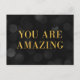 Chic Dark Bokeh Lights Faux Gold You Are Amazing Postcard