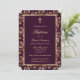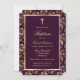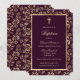 Chic Dark Purple Gold Cross Script Floral Baptism Invitation