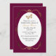 Elegant custom bridal shower invitation done in a dark raspberry with a decorative gold tone framed white oval text area. Graphics of a gold tone butterfly decorates the top of the invitation's text area. Text in black and golden yellow is ready to personalise for your special event. Lovely invitation the bride will cherish.