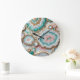 Chic Dark Teal Blue Blush Pink Gold Marble Pattern Large Clock