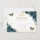 Chic Dark Teal Floral Gold Butterflies Quinceañera RSVP Card