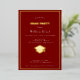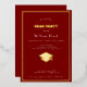 Celebrate in sophisticated style with this customisable graduation party invitation featuring a deep red background and golden real foil elements. The invitation is designed with elegance and simplicity in mind, showcasing: