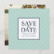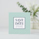 Announce your wedding in elegant style with our Chic Dots save the date cards in classic navy and soft mint green. Unique square cards feature your wedding details (names, date and location) displayed in the centre on a white square with "save the date" in a mix of navy blue block and calligraphy script typefaces. A background pattern of white diamond dots on coastal seaglass mint green completes the look. A formal yet lighthearted choice for couples who love traditional elements mixed with modern style.