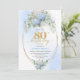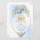 Chic Dusty Blue Floral Gold 80th Birthday Invite