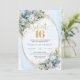 Chic Dusty Blue Floral Sweet 16th Birthday Invites