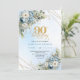 Chic Dusty Blue Gold Script 90th Birthday Invite