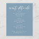 This dusty blue event details sheet are perfect for a summer coastal wedding by the sea. Personalise these light grey blue sheets with elegant minimalist typography to match your tranquil bridal colour scheme.