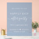 Chic dusty blue transparent acrylic wedding reception welcome sign featuring "Welcome To Our Happily Ever After Party" in simple white typography and an elegant white script with swashes, your first names joined by a heart and your reception date. Perfect for receptions after an elopement or small private wedding.