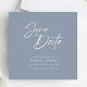 Chic Dusty Blue & White Calligraphy Save the Date Invitation