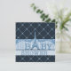 Blue boy Baby Shower invites. Elegant and glamourous French Eiffel Tower Parisian themed blue and navy Baby Shower collage invitations for boys with a cute Eiffel Tower making the letter "A" in the word baby. There is a classy polka dots diagonal pattern on navy background and chic, pretty damask, stripes and polka dots elements and printed glitter. Double sided printing. Fixed text on the front of the invites. The text on the reverse is fully personalizable to meet your needs and you can change the font style, colour and size of font if you desire. If you need any assistance customising your product please contact me through my store and I will be happy to help. PLEASE NOTE: All invites on Zazzle have flat printed images.