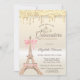 Chic Eiffel Tower Bow Drips Gold Quinceañera Invitation