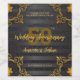 Elegant personalised 50th wedding anniversary wine bottle design featuring an elegant baroque border on a striped black glittery background. The text is fully customisable.