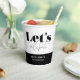 😊🥳 Introduce a touch of celebration to every sip with the Chic Elegant Birthday Let’s Celebrate Paper Cup. The front showcases three‑quarters pristine white topped by a bold “let’s celebrate” in sleek black, while the lower quarter features a deep black band displaying the honoree’s name and age in crisp white. This striking black‑on‑white contrast creates a chic, elegant look that fits perfectly for a woman, a man, or any unisex birthday gathering. The design repeats on both sides, ensuring a cohesive and festive appearance whether the cup is used for drinks, desserts, or party favours. 😊🥳😊