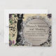 A stylish black dress on a gold backdrop with purple flowers and decorative swirls combined with a silver circle with silver flourish where you can customise your event. Fabulous chic vibes.