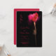 Unique, elegant and chic luxurious black wedding invitation with stylish monogrammed initials and hot red watercolor painted tulip flower abstract painting.