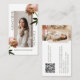 Make a lasting first impression with our elegant, modern blush pink & gold floral business card template — a luxurious and stylish design perfect for interior designers, creatives, and professionals alike. This sophisticated layout features a modern white geometric border that beautifully frames your personal photo, creating a clean, professional aesthetic. Delicate blush pink and gold peony florals accent the top and bottom corners, adding a touch of elegance and femininity. Your name appears vertically along the photo’s edge for a unique, modern touch. The reverse side includes space for a second photo, set against a softly faded matching floral background, allowing your brand personality to shine through. A clean and minimalist layout showcases your contact information, social media handles, and icons, with an optional QR code for quick access to your website or booking page. This fully customizable template allows you to easily update photos, text, colors, and details to suit your brand or profession — whether you’re an interior designer, photographer, stylist, or small business owner. Design and layout by © Moodthology Papery