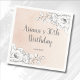 Chic blush pink watercolor gradient background, decorated with delicate, and modern sketch style white floral arrangement on the top right corner and bottom left corner. Chic font combination of elegant calligraphy and serif typography on charcoal for the birthday details.