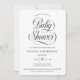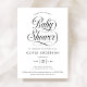 This stylish baby shower invitation features a classic white background with elegant black calligraphy script and typography. Simply edit the template with your details and choose any paper options. View coordinating items in our store or in the design collection.