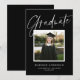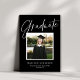 This chic graduation announcement features a chic black background (customisable), elegant typography, and one square photo. "Graduate", your student's name and all other text are white. This is a chic and elegant design. You can customise this design even further by adding another photo or additional text to the backer.
