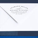 This minimal return address stamp features two names and two last names in modern elegant serif typography, joined by ´- and - word in a chic whimsical script. The name above is arched. Below there is a return address in smaller simple lettering. This stamp is perfect for an unmarried or married couple with different last names. To personalise this stamp, simply click on the ´´Personalise ´´ button.