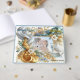 Embrace the joyous spirit of celebration with vibrant swirls of gold interwoven with soft hues of blue, crisp white, and sunny yellow satin. This enchanting design captures the essence of happiness, making it perfect for any special occasion or as a thoughtful, personal gift. Let the playful colours and elegant patterns bring warmth and cheer to your celebrations, turning any moment into a memorable experience for the wedding couple's design to personalise