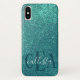 Chic Elegant Teal Blue Sparkly Glitter Monogram Case-Mate iPhone Case