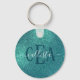 Chic Elegant Teal Blue Sparkly Glitter Monogram Key Ring