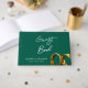 A bold and elegant wedding layout featuring a rich emerald green background with golden wedding rings in the bottom corner. A sophisticated and timeless design, perfect for classic and formal ceremonies.