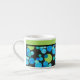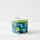 A chic Espresso Coffee Mug with a quirky Blue Moons pattern in Aqua, Turquoise, Emerald Green, Neon Green and Dazzling Blue on a black background. Part of the Posh & Painterly 'Blue Moons' collection.