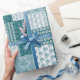 Chic Ethnic Faux Patchwork Pattern, Teal and White Wrapping Paper