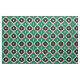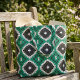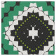 Unique and modern fabric design featuring a seamless decorative pattern made of geometric shapes in emerald green, black and white.