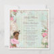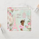 Vintage shabby chic ethnic Paris Princess ballerina baby shower invites template for African American girls' baby showers. On the front of these elegant, feminine, classy, whimsical, French Parisian Princess themed invitations is a pretty vintage art illustration of a cute and adorable ethnic baby girl with stylish gold Princess crown, pink tutu and ballet slippers / shoes. The background is a beautiful, stylish, colourful, girly antique altered art collage with blue and white stripes, and a faded damask pattern with a pretty, rustic, summer country garden border of pink roses flowers, ferns, dragonflies, green leaves, clocks, birds, and images of white lace, a pink Paris Eiffel Tower and fancy, ornate, pastel pink chandeliers. These cute, fun, colourful, fashionable, trendy, floral, original and unique, glamourous Paris princess ballet dancer theme invitation templates are decorated on both sides / have double sided printing / printed on front and back. These gorgeous, romantic, sophisticated, contemporary, invites are a modern design with an old fashioned look. Perfect for spring and summer garden baby showers. All of the text is fully customisable to meet your needs and you can change the font style, colour and size of font if you desire. If you need any assistance customising your product please contact me through my store and I will be happy to help.