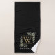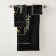Chic Eucalyptus Greenery Black Gold Monogram Bath Towel Set