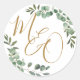 Chic Eucalyptus Greenery Wedding Initials Favour Classic Round Sticker