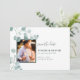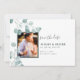 Announce your special day with these elegant Save the Date cards featuring an image of watercolor eucalyptus and a placeholder for your photo. Other coordinating items available in our Silver Dollar Eucalyptus Wedding Stationery Suite.