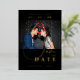 Including the Christmas couple's photo personalizes the card, allowing your loved ones to share in the joy and intimacy of your relationship. The black background provides a striking contrast, elegantly highlighting the script and metallic gold details. This Save the Date card is more than just an invitation; it's a lovely reminder of the magic of the season and the love you share.