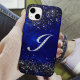 Chic faux Crystal rhinestone letter J royal blue Case-Mate iPhone Case