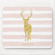 Chic Faux Gold Foil Deer on Pink Stripes Mouse Pad