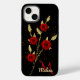 Chic faux Gold Glitter Leaves Red Rose monogram Ca Case-Mate iPhone Case