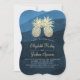 Chic Faux Gold Pineapple Couple Blue Wave Wedding Invitation